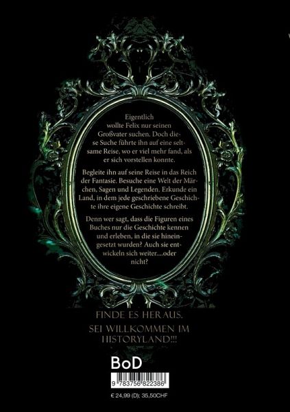 Eigentlich wollte Felix nur seinen Großvater suchen. Doch diese Suche führte ihn auf eine seltsame Reise, wo er viel mehr fand, als er sich vorstellen konnte.Begleite ihn auf seine Reise in das Reich der Fantasie. Besuche eine Welt der Märchen, Sagen und Legenden. Erkunde ein Land, in dem jede geschriebene Geschichte ihre eigene Geschichte schreibt. Denn wer sagt, dass die Figuren eines Buches nur die Geschichte kennen und erleben, in die sie hineingesetzt wurden? Auch sie entwickeln sich weiter....oder nicht?Finde es heraus.Sei willkommen im Historyland!!!