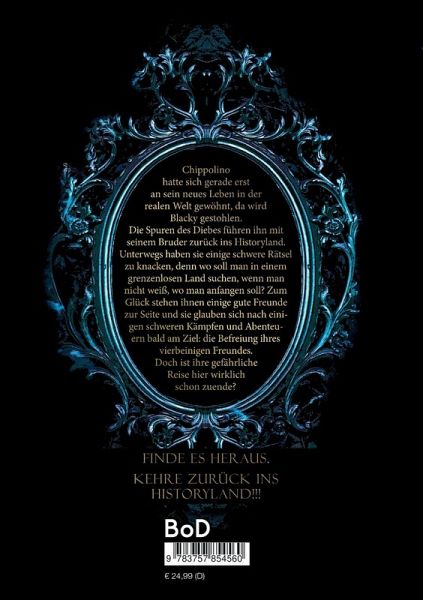 Chippolino hatte sich gerade erst an sein neues Leben in der realen Welt gewöhnt, da wird Blacky gestohlen.Die Spuren des Diebes führen ihn mit seinem Bruder zurück ins Historyland. Unterwegs haben sie einige schwere Rätsel zu knacken, denn wo soll man in einem grenzenlosen Land suchen, wenn man nicht weiß, wo man anfangen soll? Zum Glück stehen ihnen einige gute Freunde zur Seite und sie glauben sich nach einigen schweren Kämpfen und Abenteuern bald am Ziel: die Befreiung ihres vierbeinigen Freundes. Doch ist ihre gefährliche Reise hier wirklich schon zuende?