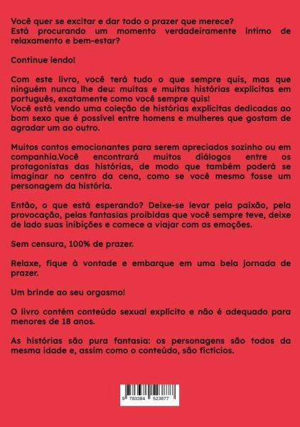 Você quer se excitar e dar todo o prazer que merece?Está procurando um momento verdadeiramente íntimo de relaxamento e bem-estar?Então continue lendo!Com este livro, você terá tudo o que sempre quis e que ninguém nunca lhe deu: muitas e muitas histórias explícitas em português, exatamente como você sempre quis!Você tem diante de si uma coleção de histórias explícitas dedicadas ao bom sexo que é possível entre homens e mulheres que gostam de agradar um ao outro. Muitos contos excitantes para experimentar sozinho ou acompanhado.Você encontrará muitos diálogos entre os protagonistas das histórias, de modo que também poderá se imaginar no centro da cena, como se você mesmo fosse um personagem da história.Então, o que está esperando? Deixe-se levar pela paixão, pela provocação, pelas fantasias proibidas que você sempre teve, deixe de lado suas inibições e comece a viajar com as emoções.Sem censura, 100% de prazer.Relaxe, fique à vontade e embarque em uma bela jornada de prazer.Um brinde ao seu orgasmo!