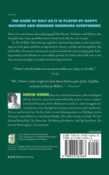 The game of golf as it is played by happy hackers and weekend warriors everywhere Most of us may dream about playing golf like Woods, Nicklaus, and Palmer, but the game they've got probably doesn't look much like the one we play. In Hit and Hope, Owen brings together entertaining essays on the mundane aspects of the game and how we approach it. Funny, candid, and thoughtful, this book offers the truest commentary on how and why the rest of us play golf, finding nobility and silliness in our endless pursuit of a little white ball over a vast (but not vast enough to contain our slices) greensward.