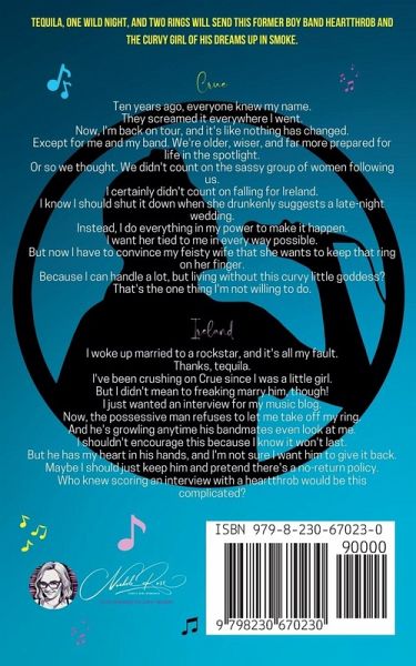 Tequila, one wild night, and two rings will send this former boy band heartthrob and the curvy girl of his dreams up in smoke. Crue Ten years ago, everyone knew my name. They screamed it everywhere I went. Now, I'm back on tour, and it's like nothing has changed. Except for me and my band. We're older, wiser, and far more prepared for life in the spotlight. Or so we thought. We didn't count on the sassy group of women following us. I certainly didn't count on falling for Ireland. I know I should shut it down when she drunkenly suggests a late-night wedding. Instead, I do everything in my power to make it happen. I want her tied to me in every way possible. But now I have to convince my feisty wife that she wants to keep that ring on her finger. Because I can handle a lot, but living without this curvy little goddess? That's the one thing I'm not willing to do. Ireland I woke up married to a rockstar, and it's all my fault. Thanks, tequila. I've been crushing on Crue since I was a little girl. But I didn't mean to freaking marry him, though! I just wanted an interview for my music blog. Now, the possessive man refuses to let me take off my ring. And he's growling anytime his bandmates even look at me. I shouldn't encourage this because I know it won't last. But he has my heart in his hands, and I'm not sure I want him to give it back. Maybe I should just keep him and pretend there's a no-return policy. Who knew scoring an interview with a heartthrob would be this complicated? This will be one boy band reunion to remember...