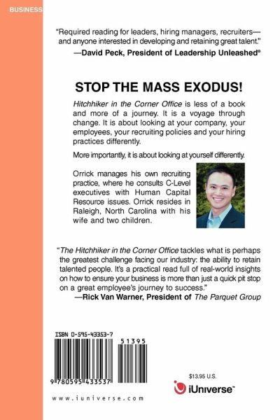 Hitchhiker in the Corner Office is less of a book and more of a journey. It is a voyage through change. It is about looking at your company, your employees, your recruiting policies and your hiring practices differently. More importantly, it is about looking at yourself differently.