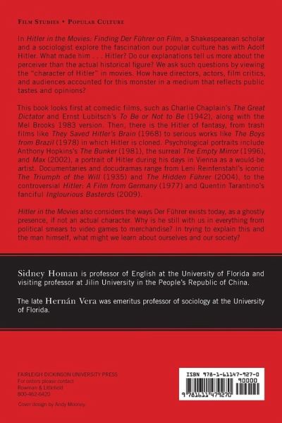 In Hitler in the Movies: Finding Der Führer on Film, a Shakespearean and a sociologist explore the fascination our popular culture has with Adolf Hitler. What made him . Hitler? Do our explanations tell us more about the perceiver than the actual historical figure? We ask such question by viewing the Hitler character in the movies. How have directors, actors, film critics, and audiences accounted for this monster in a medium that reflects public tastes and opinions? The book first looks at comedic films, such as Chaplain's The Great Dictator or Ernst Lubitsch's To Be or Not to Be (1942), along with the Mel Brooks's 1983 version. Then, there is the Hitler of fantasy, from trash films like The Saved Hitler's Brain to a serious work like The Boys from Brazil where Hitler is cloned. Psychological portraits include Anthony Hopkins's The Bunker, the surreal The Empty Mirror, and Max, a portrait of Hitler in his days in Vienna as a would-be artist. Documentaries and docudramas range from Leni Reinfenstahl's iconic The Triumph of the Will or The Hidden Führer, to the controversial Hitler: A Film from Germany and Quentin Tarantino's fanciful Inglourious Basterds. Hitler in the Movies also considers the ways Der Führer remains today, as a ghostly presence, if not an actual character. Why is he still with us in everything from political smears to video games to merchandise? In trying to explain this and the man himself, what might we learn about ourselves and our society?