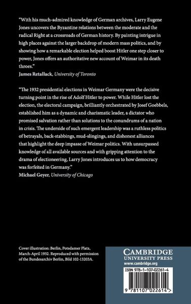 Hitler versus Hindenburg provides the first in-depth study of the titanic struggle between the two most dominant figures on the German Right in the last year before the establishment of the Third Reich. Although Hindenburg was reelected as Reich president by a comfortable margin, his authority was severely weakened by the fact that the vast majority of those who had supported his candidacy seven years earlier had switched their support to Hitler in 1932. What the two candidates shared in common, however, was that they both relied upon charisma to legitimate their claim to the leadership of the German nation. The increasing reliance upon charisma in the 1932 presidential elections greatly accelerated the delegitimation of the Weimar Republic and set the stage for Hitler's appointment as chancellor nine months later.