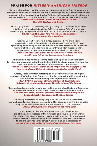 "A book examining the strange terrain of Nazi sympathizers, nonintervention campaigners and other voices in America who advocated on behalf of Nazi Germany in the years before World War II. Americans who remember World War II reminisce about how it brought the country together. The less popular truth behind this warm nostalgia: until the attack on Pearl Harbor, America was deeply, dangerously divided. Bradley W. Hart's Hitler's American Friends exposes the homegrown antagonists who sought to protect and promote Hitler, leave Europeans (and especially European Jews) to fend for themselves, and elevate the Nazi regime. Some of these friends were Americans of German heritage who joined the Bund, whose leadership dreamed of installing a stateside Fuhrer. Some were as bizarre and hair-raising as the Silver Shirt Legion, run by an eccentric who claimed that Hitler fulfilled a religious prophesy. Some were Midwestern Catholics like Father Charles Coughlin, an early right-wing radio star who broadcast anti-Semitic tirades. They were even members of Congress who used their franking privilege--sending mail at cost to American taxpayers--to distribute German propaganda. And celebrity pilot Charles Lindbergh ended up speaking for them all at the America First Committee. We try to tell ourselves it couldn't happen here, but Americans are not immune to the lure of fascism. Hitler's American Friends is a powerful look at how the forces of evil manipulate ordinary people, how we stepped back from the ledge, and the disturbing ease with which we could return to it"--