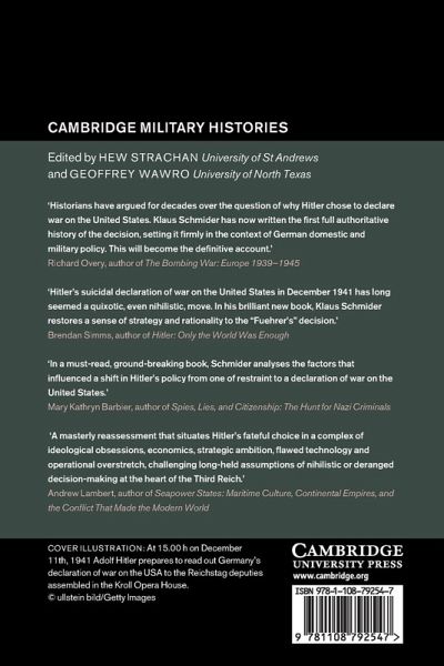 In this revisionist account, Klaus H. Schmider examines German strategy, foreign policy and war production to uncover the chain of events which would incite Hitler to declare war on the United States - a move which may have appeared an excellent bet at the time, but which would doom the Third Reich.