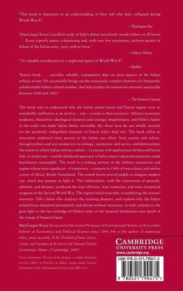 Offering an innovative analytical cross-section of the Italian war effort, from society and culture through politics and war production, the author provides a striking portrait of the military institutions and regime that failed in mobilizing the nation's resources.