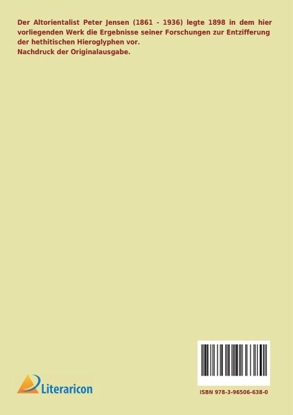 Der Altorientalist Peter Jensen (1861 - 1936) legte 1898 in dem hier vorliegenden Werk die Ergebnisse seiner Forschungen zur Entzifferung der hethitischen Hieroglyphen vor. Nachdruck der Originalausgabe.
