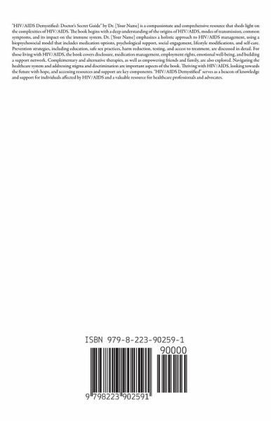 "HIV/AIDS Demystified: Doctor's Secret Guide" by Dr. [Your Name] is a compassionate and comprehensive resource that sheds light on the complexities of HIV/AIDS. The book begins with a deep understanding of the origins of HIV/AIDS, modes of transmission, common symptoms, and its impact on the immune system. Dr. [Your Name] emphasizes a holistic approach to HIV/AIDS management, using a biopsychosocial model that includes medication options, psychological support, social engagement, lifestyle modifications, and self-care. Prevention strategies, including education, safe sex practices, harm…mehr
