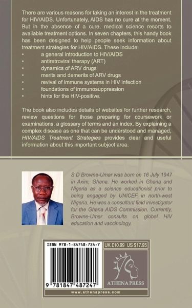 There are various reasons for taking an interest in the treatment for HIV/AIDS. Unfortunately, AIDS has no cure at the moment. But in the absence of a cure, medical science resorts to available treatment options. In seven chapters, this handy book has been designed to help people seek information about treatment strategies for HIV/AIDS. These include: ¿ a general introduction to HIV/AIDS ¿ antiretroviral therapy (ART) ¿ dynamics of ARV drugs ¿ merits and demerits of ARV drugs ¿ revival of immune systems in HIV infection ¿ foundations of immunosuppression ¿ hints for the HIV-positive. The book also includes details of websites for further research, review questions for those preparing for coursework or examinations, a glossary of terms and an index. By explaining a complex disease as one that can be understood and managed, HIV/AIDS Treatment Strategies provides clear and useful information about this important subject area. S D Browne-Umar was born on 16 July 1947 in Axim, Ghana. He worked in Ghana and Nigeria as a science educationist prior to being engaged by UNICEF in north-west Nigeria. He was a consultant field investigator for the Ghana AIDS Commission. Currently, Browne-Umar consults on global HIV education and vaccinology.