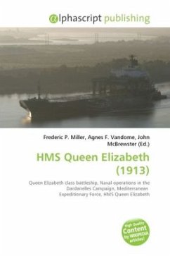 High Quality Content by WIKIPEDIA articles! HMS Queen Elizabeth (pennant number 00) was the lead ship of the Queen Elizabeth-class of Dreadnought battleships, named in honour of Elizabeth I of England. She saw service in both World Wars. She was launched on 16 October 1913 at Portsmouth, Hampshire, and entered service in January 1915 during World War I. While still undergoing testing in the Mediterranean, the Queen Elizabeth was sent to the Dardanelles for the Allied attempt to knock the Ottoman Empire out of the war. The Queen Elizabeth was the only modern battleship to participate, though a number of battlecruisers and pre- dreadnought battleships were also involved.