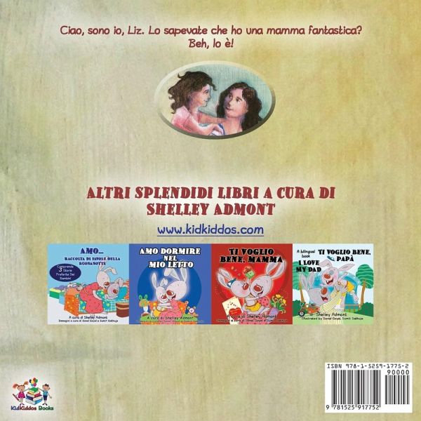 My Mom is Awesome - Italian Edition In this touching bedtime story, a little girl describes why her Mom is awesome. We see her going through her day, carrying the warmest feeling about her mother. Mom always knows how she feels and can help with any problem. Mom can make the most complicated braid and explain fractions; Mom can help to wake her up in the morning and hug her tightly when she's sad. In questa toccante storia della buona notte, una bambina ci dice perché ha una mamma fantastica. Vediamo che, nel corso della sua giornata, porta con sé il tenero affetto per sua madre. La mamma sa sempre come si sente e l'aiuta a risolvere qualsiasi problema. La mamma è capace di fare la treccia più complicata e di spiegare le frazioni; la mamma le da la sveglia la mattina e l'abbraccia quando è triste.