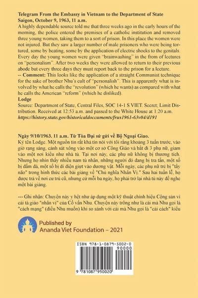 Công cüc tranh ¿¿u ¿òi quy¿n bình ¿¿ng tôn giáo c¿a Ph¿t Giáo Vi¿t Nam b¿t ¿¿u ¿ Hü v¿i cái ch¿t c¿a tám Ph¿t t¿ ¿êm 8/5/1963 t¿i ¿ài phát thanh, ti¿p theo là cüc t¿ thiêu c¿a Hòa Th¿¿ng Thích Qüng ¿¿c ngày 11/6/1963 t¿i Sài Gòn và chi¿n d¿ch "n¿¿c l¿" t¿ng t¿n công chùa chi¿n toàn qüc ¿êm 20 r¿ng ngày 21/8/1963. Ba bi¿n c¿ l¿ch s¿ quan tr¿ng c¿a phong trào Ph¿t Giáo tranh ¿¿u này d¿n ¿¿n cüc kh¿ng höng chính tr¿ tr¿m tr¿ng kéo dài n¿a n¿m và k¿t thúc b¿ng cüc ¿¿o chánh l¿t ¿¿ chính quy¿n c¿a T¿ng th¿ng Ngô ¿ình Di¿m. Kh¿i ¿¿u t¿ l¿ Ph¿t ¿¿n t¿ ngày 8/5/1963 và ch¿m d¿t vào ¿êm 20 tháng 8 n¿m 1963 là cüc tranh ¿¿u c¿a Ph¿t Giáo, ti¿p sau ¿ó là cüc n¿i d¿y toàn di¿n c¿a h¿c sinh, sinh viên, và quân dân Mi¿n Nam Vi¿t Nam kéo dài h¿n hai tháng ¿¿¿c k¿t thúc b¿ng cüc ¿¿o chánh quân s¿ ngày 1/11/1963. K¿ t¿ n¿m 1963 ¿¿n nay (2021) là h¿n n¿a th¿ k¿. Các kho l¿u tr¿ tài li¿u m¿t c¿a các b¿ Ngöi Giao, Qüc Phòng, và c¿c Tình báo Trung ¿¿ng Hoa K¿ ¿ã gi¿i m¿t cho công chúng và gi¿i nghiên c¿u ¿¿¿c t¿ do ti¿p c¿n, vào xem höc truy c¿p ¿i¿n t¿, ¿¿ m¿i ng¿¿i có th¿ nhìn l¿i m¿t khúc quanh c¿a l¿ch s¿ Vi¿t Nam m¿t cách rõ ràng. Sách này ¿¿¿c ghi theo hình th¿c biên niên s¿, v¿ các s¿ ki¿n t¿ ngày 8/5/1963 cho t¿i vài ngày sau cüc chính bi¿n 1/11/1963, nhìn t¿ phía chính ph¿ Hoa K¿. Nh¿ th¿, qua các tài li¿u ¿ã gi¿i m¿t, ng¿¿i ¿¿c có th¿ th¿y rõ ràng cüc ¿¿o chánh 1-11-1963 nh¿m l¿t ¿¿ ch¿ ¿¿ Ngô ¿ình Di¿m không kh¿i ngün t¿ s¿ xúi gi¿c c¿a b¿t k¿ ngöi nhân nào, k¿ c¿ t¿ Hoa K¿. ¿i¿u này ¿¿¿c th¿y trong ¿i¿n v¿n c¿a ¿¿i s¿ Lodge g¿i v¿ M¿ ngày 30-10-1963 nói r¿ng chuy¿n ¿¿o chánh hoàn toàn n¿m trong tay phía ng¿¿i Vi¿t, còn M¿ không c¿n ng¿n gì ¿¿¿c. C¿ng trong ngày ¿ó, T¿¿ng Tr¿n V¿n ¿ôn h¿a s¿ ti¿t l¿ k¿ höch ¿¿o chánh cho ¿¿i s¿ Lodge bi¿t 4 gi¿ ¿¿ng h¿ tr¿¿c khi ¿¿o chánh kh¿i ¿¿ng. Tuy nhiên, vào ngày 1-11-1963, Tòa ¿¿i s¿ M¿ ch¿ ¿¿¿c báo tr¿¿c 4 phút mà thôi. Lý do ¿¿n gi¿n là phía các t¿¿ng lãnh ¿¿o chính e s¿ b¿ Hoa K¿ bán ¿¿ng k¿ höch cho Nhu-Di¿m. Hy v¿ng các thông tin ¿ã gi¿i m¿t n¿y, ít nh¿t là t¿ phía M¿, s¿ giúp các s¿ gia và sinh viên ngành s¿ h¿c có thêm tài li¿u tham chi¿u ¿¿ th¿m ¿¿nh m¿t cách chính xác và ¿úng ¿¿n v¿ m¿t giai ¿ön bi hùng c¿a l¿ch s¿ n¿¿c Vi¿t th¿i c¿n ¿¿i.