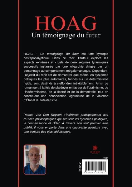 HOAG ¿ Un témoignage du futur est une dystopie postapocalyptique. Dans ce récit, l¿auteur explore les aspects extrêmes et cruels de deux régimes tyranniques successifs instaurés par une oligarchie dirigée par un personnage au comportement mégalomaniaque. Cependant, l¿objectif du récit est de démontrer que même les systèmes politiques les plus autoritaires, fondés sur un déterminisme rigide, sont destinés à s¿effondrer inévitablement. Ainsi, ce roman sert à la fois de plaidoyer en faveur de l¿optimisme, de l¿indéterminisme, de la liberté et de la démocratie, tout en constituant une dénonciation vigoureuse de la violence d¿État et du totalitarisme.