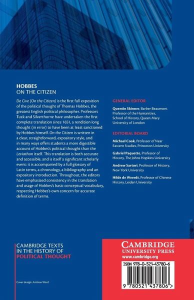 De Cive (On the Citizen) is the first full exposition of the political thought of Thomas Hobbes, the greatest English political philosopher of all time. Professors Tuck and Silverthorne have undertaken the first complete translation since 1651, a rendition long thought (in error) to be sanctioned by Hobbes himself.