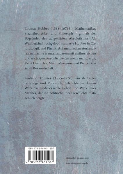 Thomas Hobbes (1588-1679) - Mathematiker, Staatstheoretiker und Philosoph - gilt als der Begründer des aufgeklärten Absolutismus. Als Wunderkind hochgelobt, studierte Hobbes in Oxford Logik und Physik. Auf mehrfachen Auslandsreisen machte er unter anderem mit einflussreichen und wichtigen Persönlichkeiten wie Francis Bacon, René Descartes, Marin Mersenne und Pierre Gassendi Bekanntschaft.Ferdiand Tönnies (1855-1936), ein deutscher Soziologe und Philosoph, beleuchtet in diesem Werk das eindrucksvolle Leben und Werk eines Mannes, der die politische Ideengeschichte maßgeblich prägte.