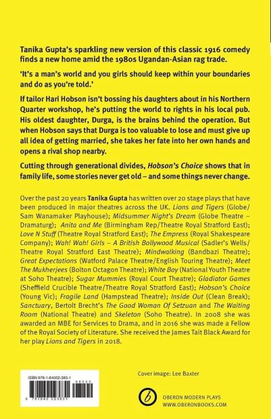 Widower Hari Hobson has a successful dress-making business and three daughters. The oldest, Durga, is the brains behind the operation. 'Can't we choose husbands for ourselves?' I've been telling you for the last five minutes, you're not even fit to choose dresses for yourselves.' But when Hobson says that Durga is too valuable to lose and must give up all idea of getting married, she takes her fate into her own hands and starts her own rival shop nearby. Tanika Gupta's new version of this classic 1916 comedy sets the play in a modern day Salford Asian community, giving a new generation a…mehr