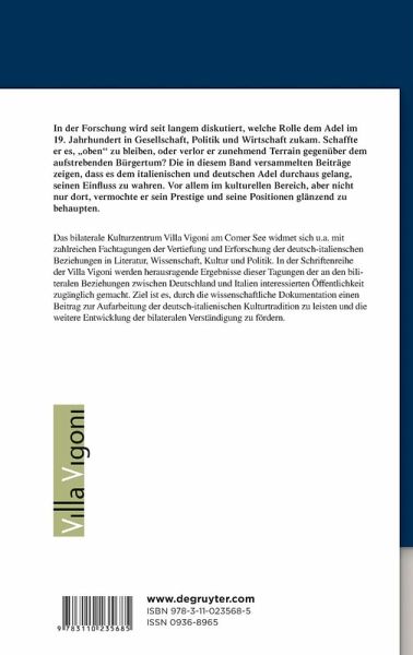 Der Band bietet erstmals in vergleichender Perspektive Studien zur politischen Kulturgeschichte und symbolischen Praktiken der deutschen und italienischen Adelslandschaft. Thematisiert werden kulturelle Verhaltensmuster und adliger Lebensstil, seit Jahrhunderten tradierte ethische Verhaltensnormen und Denkweisen. Adligen Traditionen bewahrten große Leistungsbereitschaft gemäß spezifischer Normen wie Caritas, Religiosität, kriegerischem Mut, wobei sich beide Adelsgruppen durch ein prestigeträchtiges Mäzenatentum auszeichneten. Deutlich wird für beide Länder, dass einerseits regionale Traditionen noch lange nationale Orientierungen überlagerten, dass andererseits aber gerade der Hochadel in einem europäischen Raum agierte. Adlige werden hier zudem als liberale Politiker und als erfolgreiche Unternehmer fokussiert. Vor allem werden sie in diesem Band als Meister der Sichtbarkeit medien- und kulturgeschichtlich präsentiert. Als weiterführender Diskussionspunkt wird gefragt, ob man das 19. Jahrhundert schlicht als bürgerlich etikettieren kann.