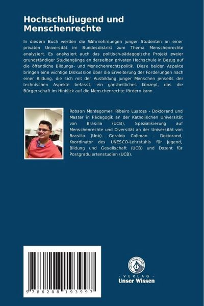 In diesem Buch werden die Wahrnehmungen junger Studenten an einer privaten Universität im Bundesdistrikt zum Thema Menschenrechte analysiert. Es analysiert auch das politisch-pädagogische Projekt zweier grundständiger Studiengänge an derselben privaten Hochschule in Bezug auf die öffentliche Bildungs- und Menschenrechtspolitik. Diese beiden Aspekte bringen eine wichtige Diskussion über die Erweiterung der Forderungen nach einer Bildung, die sich mit der Ausbildung junger Menschen jenseits der technischen Aspekte befasst, ein ganzheitliches Konzept, das die Bürgerschaft im Hinblick auf die Menschenrechte fördern kann.