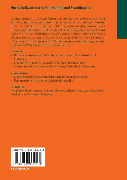 In "feminisierten" Hochschulfächern wie der Erziehungswissenschaft dreht sich das Geschlechterverhältnis vom Studium bis zur Professur beinahe um - dieses Phänomen zeigt sich nicht nur in Deutschland, sondern auch in den skandinavischen Ländern. Am Beispiel Norwegen untersucht Anna Gstöttner in einer qualitativen Analyse, welche Faktoren dieses Phänomen erklären können. Es zeigt sich, dass ein Mix aus individuellen und strukturellen, wissenschaftsimmanenten Faktoren zu einer Entscheidung gegen eine professorale Wissenschaftskarriere führen kann.