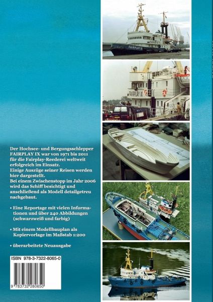 Der Hochsee- und Bergungsschlepper Fairplay IX war von 1971 bis 2011 für die Fairplay-Reederei weltweit erfolgreich im Einsatz. Einige Auszüge seiner Reisen werden hier dargestellt. Bei einem Zwischenstopp im Jahr 2006 wird das Schiff besichtigt und anschließend als Modell detailgetreu nachgebaut. - Eine Reportage mit vielen Informationen und über 240 Abbildungen (schwarzweiß und farbig) - Mit einem Modellbauplan als Kopiervorlage im Maßstab 1:200 - überarbeitete Neuausgabe