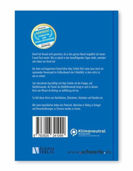 Damit hat Konrad nicht gerechnet, als er den ganzen Abend vergeblich auf seinen Freund Paul wartete. Was er jedoch in den darauffolgenden Tagen erlebt, verändert sein Leben von Grund auf. Der Autor und begeisterte E-Auto Fahrer Hajo Schörle, führt seine Leser durch ein spannungsvolles Verwirrspiel im Einflussbereich der E-Mobilität, in dem nichts ist, was es zu sein scheint. Gekonnt greift er dabei die hochaktuellen Interessenskonflikte auf, in denen die Entwicklung der Elektromobilität sich derzeit bewegt. Als Pionier der ersten Stunde weiß er, Fiktion und Wirklichkeit raffiniert miteinander zu verweben. Von der ersten bis zur letzten Seite HOCHSPANNUNG pur! Für alle E-Mobil Fans ein absolutes Muss.