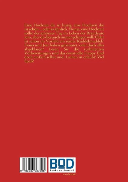 Eine Hochzeit die ist lustig, eine Hochzeit die ist schön... oder so ähnlich. Nunja, eine Hochzeit sollte der schönste Tag im Leben der Brautleute sein, aber ob dies auch immer gelingen will? Oder ist schon im Vorfeld ein reines Kuddelmuddel? Fiona und Jost haben geheiratet, oder doch alles abgeblasen? Lesen Sie die turbulenten Vorbereitungen und das eventuelle Happy End doch einfach selbst und: Lachen ist erlaubt! Viel Spaß!