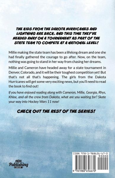 The kids from the Dakota Hurricanes and Lightning are back, and this time they've headed away on a tournament as part of the state team to compete at a national level! Millie making the state team has been a lifelong dream and one she had finally gathered the courage to go after. Now, on the team, nothing was going to stand in her way from chasing her dreams. Millie and Cameron have headed away for a state tournament in Denver, Colorado, and it will be their toughest competition yet! But that's not all that's happening. The girls from the Dakota Hurricanes will get some very exciting news, but you'll need to read the book to find out! If you have enjoyed reading along with Cameron, Millie, Georgia, Rhys, Khloe, and all the crew from Dakota, what are you waiting for? Skate your way into Hockey Wars 11 now!