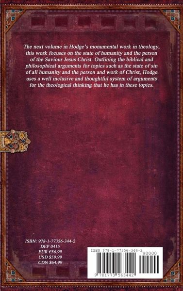 The next volume in Hodge's monumental work in theology, this work focuses on the state of humanity and the person of the Saviour Jesus Christ. Outlining the biblical and philosophical arguments for topics such as the state of sin of all humanity and the person and work of Christ, Hodge uses a well inclusive and thoughtful system of arguments for the theological thinking that he has in these topics. Now in larger print!