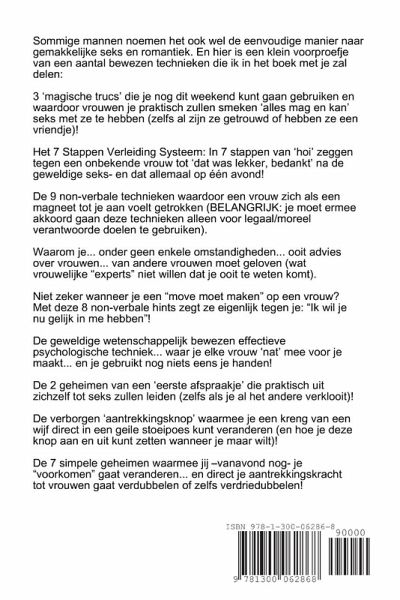 Het geheim achter vrouwen als een magneet tot je aantrekken... zonder ze ooit achter hun kont aan te hoeven zitten... of ze te moeten benaderen! Als je deze geheimen namelijk onder de knie hebt zul je automatisch vrouwen ontmoeten. Je 'zet' je aantrekkingskracht als het ware 'aan'... waardoor je direct seks, romantiek en wilde nachten in je leven zult krijgen! Dit is geen New Age geleuter waar je in het dagelijkse leven helemaal niets mee kan. Ze werken voor iedereen, altijd en overal (zelfs al denk je nog dat je situatie absoluut hopeloos is- mijn technieken werken altijd). Het is een risico-vrije, kan-simpelweg-niet-mislukken handleiding over hoe je als een magneet een hele rits geile, bereidwillige vrouwen tot je aan kunt trekken... zonder je bezig te hoeven houden met hun spelletjes of met hun afwijzing moet omgaan. Sommige mannen noemen het ook wel de eenvoudige manier naar gemakkelijke seks en romantiek.