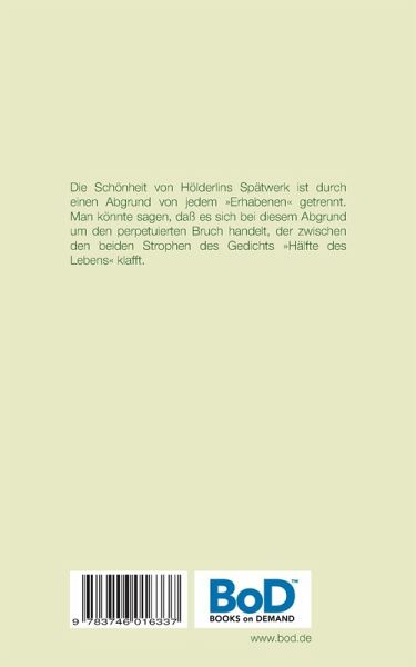 Köllings Hölderlin-Essay verortet den Schlüssel zum Gesamtwerk des Dichters in dem berühmten Gedicht "Hälfte des Lebens". Mit dem Bruch, den dieses Gedicht markiert, konnte Hölderlin sich nicht länger als Dichter-Priester, als Verkünder des Göttlichen oder Heiligen empfinden. Stattdessen wurde er zum Wanderer, zum Eingeweihten der Landschaft. Dies blieb nicht ohne Folgen für den hymnischen Spätstil. Dieser nimmt seinen Anfang im Jahr 1800 in der Ode "Heidelberg". Mit ihr wird Hölderlin zum Magischen Realisten, mit Klopstock als einzigem Vorläufer. "Hölderlins Landschaft", der äußeren Form nach eine Auslegung der Heidelberg-Ode von Strophe zu Strophe, bettet den Ertrag der Lektüre zugleich auf die knappe Weise einer dichten Beschreibung in die Geschichte der Hölderlin-Philologie ein. Die Linie der Interpretationen Walter Benjamins, Peters Szondis und Theodor W. Adornos wird fortgesetzt. Der Begriff des Mythos, unter den man Hölderlins Spätwerk noch heute gerne stellt, wird als unzureichend erkannt. Stattdessen wird, worin die poetischen, theologischen, philosophischen und politisch-revolutionären Dimensionen von Hölderlins Werk zusammenfließen, unter einen Satz von Hugo Ball gestellt: "Wo kein Sakrament existiert, ist keine Empörung möglich." Ein Epilog über die Hölderlin-Lektüre Carl Schmitts beschließt den Essay, der im Medium der Hölderlin-Auslegung eine eigene Poetologie formuliert.