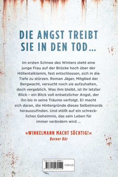 Im ersten Schnee des Winters steht eine junge Frau auf einer Eisenbrücke hoch über der Höllentalklamm. Sie ist fest entschlossen, sich in die Tiefe zu stürzen. Roman Jäger, Mitglied der Bergwacht, versucht noch sie aufzuhalten, doch vergeblich. Was ihm bleibt, ist ihr letzter Blick - ein Blick voll entsetzlicher Angst, der ihn bis in seine Träume verfolgt. Er macht sich daran, die Hintergründe dieses Selbstmords herauszufinden. Und stößt auf ein schreckliches Geheimnis, das sein Leben für immer verändern wird ...