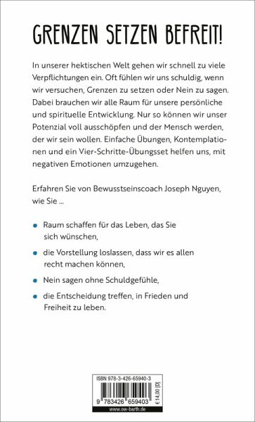 In unserer hektischen Welt gehen wir schnell zu viele Verpflichtungen ein. Anschließend fühlen wir uns oft schuldig, wenn wir versuchen, Grenzen zu setzen oder Nein zu sagen. Dabei brauchen wir alle Raum für unsere persönliche und spirituelle Entwicklung. Nur so können wir unser Potenzial voll ausschöpfen und der Mensch werden, der wir sein wollen. Das erklärt Joseph Nguyen klug und leicht nachvollziehbar.