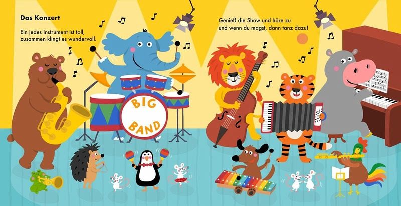 Am Saxophon übt sich der Bär, das Fräulein Nilpferd spielt Klavier. Die Bongos spielt man mit der Hand - am Schlagzeug sitzt der Elefant ...
