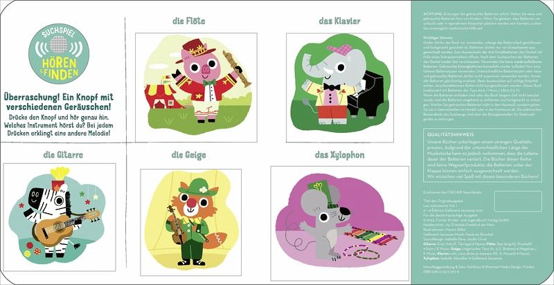 QUALITÄTSHINWEIS: Unsere Bücher unterliegen einem strengen Qualitätsprozess. Aufgrund der unterschiedlichen Länge der Musikstücke kann es jedoch vorkommen, dass die Lebensdauer der Batterien variiert. Die Bücher dieser Reihe sind keine Wegwerfprodukte; die Batterien im jeweiligen Buch können deshalb einfach ausgewechselt werden. Wir wünschen viel Spaß mit diesen besonderen Büchern!