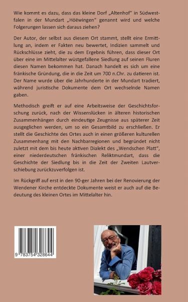 Wie kommt es dazu, dass das kleine Dorf Altenhof in Südwestfalen in der Mundart Höëwingen genannt wird und welche Folgerungen lassen sich daraus ziehen? Der Autor, der selbst aus diesem Ort stammt, stellt eine Ermittlung an, indem er Fakten zusammenstellt und neu bewertet, Indizien sammelt und Rückschlüsse zieht, die zu dem Ergebnis führen, dass dieser Ort über eine im Mittelalter wüstgefallene Siedlung seinen Namen bekommen hat. Danach handelt es sich um eine fränkische Gründung, die in die Zeit vor 700 n.Chr. zu datieren ist. Der Name wurde über die Jahrhunderte in der Mundart tradiert, während juristische Dokumente ihm wechselnde Namen gaben. Methodisch greift er auf eine Arbeitsweise der Geschichtsforschung zurück, nach der Wissenslücken in älteren historischen Zusammenhängen durch eindeutige Zeugnisse aus späterer Zeit ausgeglichen werden, um so ein Gesamtbild zu erschließen. Er stellt die Geschichte des Ortes auch in einen größeren Zusammenhang mit den Nachbarregionen und begründet nicht zuletzt mit dem bis heute aktiven Dialekt des Wendschen Platt, einer niederdeutschen fränkischen Reliktmundart, dass die Geschichte der Siedlung bis in die Zeit der Zweiten Lautverschiebung zurückzuverfolgen ist. Im Rückgriff auf Dokumente, die erst in den 90-ger Jahren bei der Renovierung der Wendener Kirche entdeckt wurden, weist er auch auf die Bedeutung des kleinen Ortes im Mittelalter hin.