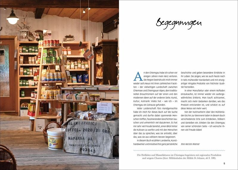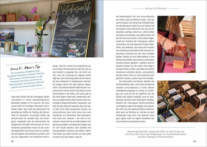 Tauchen Sie ein in eine Welt, in der die Alpen und der Chiemsee als Kulisse für die Herstellung einzigartiger Produkte dienen, die mit unermüdlicher Leidenschaft und teils mühevoller Handarbeit gefertigt werden. Landwirte, Kunsthandwerker und Kreative aus dem Chiemgau teilen in diesem Chiemgau Reiseführer der anderen Art ihre faszinierenden Geschichten und gewähren dem Leser spannende Einblicke in Ihre Arbeit. Von der Hutmacherin, die ihre Handwerkskunst mit Hingabe pflegt, über den traditionellen Mühlenladen bis zur urigen Brennerei - diese Orte laden Sie ein, zu entdecken, zu stöbern, zu verkosten und vor allem zu genießen.