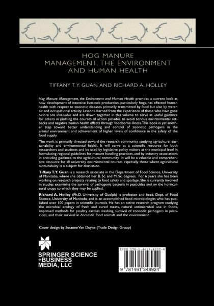 "The authors of the book [Guan and Holley] ... have done an excellent job of assembling scientific information that describes the relationship of manure management issues to human health problems in Canada and other major hog producing countries." (J. Lloyd Spencer, DVM, MS, PhD, Research Scientist, Animal Disease Research Institute, Food Inspection Agency, Ottawa, Ontario, Canada) "Hog Manure Management, the Environment and Human Health provides a current look at how development of intensive livestock production, particularly hogs, has affected human health with respect to zoonotic diseases primarily transmitted by food but also by water, air, and occupational activity. ... The book will serve as a scientific resource for both researchers and students and be used by legislative policy makers at the municipal level in formulating regional guidelines for manure handling practices, and by industry association s in providing guidance to the agricultural community." - Food Trade Review, December 2003
