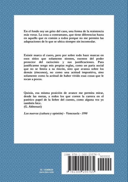 Hojas de sombra es una antología de cuentos breves, prosas poéticas y páginas de diario que involucran al lector en las vivencias emocionales de un autor si se quiere particularísimo a la hora de expresar su relación consigo y con la vida. Como en toda su obra, la intensidad narrativa de Akhenazi queda de manifiesto en estos relatos breves de solidez monolítica y a la vez, de prosa ágil e impecable. La lectura, casi imposible de abandonar, consigue arrastrar al lector tanto por los valles de la sensibilidad más profunda como a las simas del rechazo más visceral, ambos sentimientos que este autor, como pocos, consigue generar a partir de un dibujo narrativo intenso, fecundo y desmesuradamente apasionado. Para leer, para recomendar, para recordar. (AlKasim)
