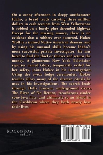 HumanMade Top 105 Best Suspense, Thriller, and Mysteries of All TimeHokee Wolf is a trained Native American shaman, and by using his unusual skills became Idaho's most successful private investigator. On a sunny afternoon in sleepy southeastern Idaho, a bread truck carrying three million dollars in cash receipts from West Yellowstone is robbed on a lonely pine shrouded highway. Except for the missing money, there is no evidence that a robbery ever occurred. Hokee is hired to find the thief or thieves and return the money. A glamorous New York Television reporter named Glory, temporarily exiled for her safety, joins Hokee in his investigation. Using the sweat lodge ceremonies, Hokee teaches Glory many of the shaman rituals he uses in his investigations. The search leads through Hells Canyon, underground rivers, The River of No Return, treacherous cinder cone lava flats, and ultimately to an island in the Caribbean where they both nearly lose their lives.