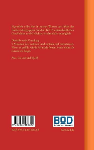 Zauberhafte Kurzgeschichten für kleine Leseratten. In für Kinder gut verständliche Worte gefaßt, sind mit viel Liebe Situationen zwischen Realität und Phantasie beschrieben. Bestens geeignet zum Vorlesen oder auch selbst lesen. Wobei sich gerade die Kurzgeschichte hervorragend dazu eignet auch Kinder zum Lesen zu bewegen, die, aus welchem Grund auch immer, Angst haben von einem Buch erschlagen zu werden, daß ganz gelesen werden muß um den Inhalt zu erfassen. Hier kann sich jedes Kind das aussuchen, was für es selbst passt.