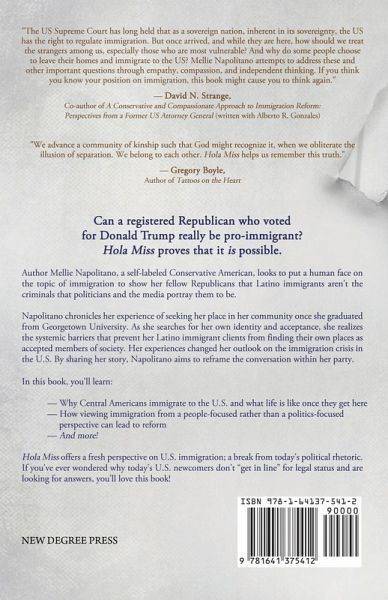 In Hola Miss, Author Mellie Napolitano looks to put a human face on the topic of immigration. Napolitano chronicles her experience of seeking her place in her community once she graduated from college. As she searches for her own identity and acceptance, she realizes the systemic barriers that prevent her Latino immigrant clients from finding their own places as accepted members of society. Her experiences changed her outlook on the immigration crisis in the U.S. By sharing her story, Napolitano aims to reframe the conversation on immigration. In this book, you'll learn:Why Central Americans immigrate to the U.S. and what life is like once they get here How viewing immigration from a people-focused rather than a politics-focused perspective can lead to reform And more! Hola Miss offers a fresh perspective on U.S. immigration; a break from today's political rhetoric. If you've ever wondered why today's U.S. newcomers don't "get in line" for legal status and are looking for answers, you'll love this book!