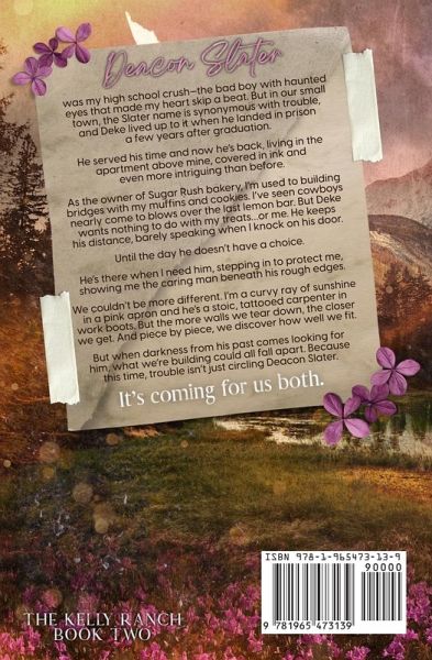Deacon Slater was my high school crush-the bad boy with haunted eyes that made my heart skip a beat. But in our small town, the Slater name is synonymous with trouble, and Deke lived up to it when he landed in prison a few years after graduation. He served his time and now he's back, living in the apartment above mine, covered in ink and even more intriguing than before. As the owner of Sugar Rush bakery, I'm used to building bridges with my muffins and cookies. I've seen cowboys nearly come to blows over the last lemon bar. But Deke wants nothing to do with my treats...or me. He keeps his distance, barely speaking when I knock on his door. Until the day he doesn't have a choice. He's there when I need him, stepping in to protect me, showing me the caring man beneath his rough edges. We couldn't be more different. I'm a curvy ray of sunshine in a pink apron and he's a stoic, tattooed carpenter in work boots. But the more walls we tear down, the closer we get. And piece by piece, we discover how well we fit. But when darkness from his past comes looking for him, what we're building could all fall apart. Because this time, trouble isn't just circling Deacon Slater. It's coming for us both.
