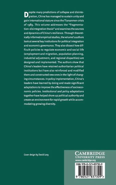 This volume addresses the 'fragmentation/disintegration thesis' and examines the sources and dynamics of China's resilience.