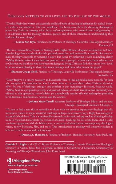 Martin Luther wrote: "Faith takes hold of Christ and has Him present, enclosing Him as a ring encloses a gem." We hold faith as we seek to know Christ better, exploring Christian doctrines and deepening our understanding of their relevance to our day-to-day lives. Faith holds us as we respond to Christ's calling, negotiate life's challenges, and join in the work of bringing in God's kingdom. This introduction to Christian theology shows how various understandings of particular doctrines play out in relation to the way we live our lives. It explores the content of core Christian doctrines and celebrates the "so what?" of each. Using theological literature and Scripture, but also current events, sociology, fiction, and movies, Rigby shows that theology is key to how we come to understand and negotiate our world. Holding Faith contends that some approaches to Christian doctrine are preferable to others, making persuasive arguments for creative ways of believing that can enliven our lives, and the life of the world. Theology has relevance because it can stymie or transform. How will we hold our faith? "Cynthia Rigby has written an accessible and lucid book of theological reflection for today's believers, seekers, and doubters. This is no small feat. The book succeeds in the daunting challenges of presenting Christian theology with clarity and completeness, with commitment and generosity. It is an admirable text for theology students, pastors, and all those interested in understanding more deeply their faith and life." Leanne Van Dyk, President and Professor of Theology, Columbia Theological Seminary, Decatur, GA "This is an extraordinary book. Cynthia Rigby is a Reformed theologian, a minister, and a teacher. All of these gifts are evident in Holding Faith, as Rigby offers an eloquent introduction to Christian theology that is academically rich, pastorally sensitive, and profoundly accessible. She does not make theology accessible by watering it down, but rather by explaining it with compelling clarity. Holding Faith is perfect for seminarians, pastors, church groups, and curious souls; for those who are new to Christianity and those who have been studying and living Christian faith their entire lives. It will be an enormous blessing to those who teach theology and those who preach the gospel." Shannon Craigo-Snell, Professor of Theology, Louisville Presbyterian Theological Seminary, Louisville, KY "Cindy Rigby's is a timely, necessary, and accessible voice in theological discourse, not only for those who together comprise Christendom but also for those who are curious enough about what Christian doctrines offer by way of challenge, critique, and comfort in our increasingly distracted, fractious world. Holding Faith is a prophetic, priestly, and pastoral defense of a faith tradition that historically contributed to this oppressive state of affairs - yet undoubtedly remains rife with redemptive possibility - for individuals, communities, nations, the cosmos. In its pages, Rigby provides church folks, people of other faiths, seminarians, and inquisitive "nones" with a "thoughtful place" to search out our private and corporate relationships to the God whom the doctrines signify, however imperfectly." JoAnne Marie Terrell, Associate Professor of Theology, Ethics, and the Arts, Chicago Theological Seminary "For those of us who teach theology, it's rare to find a text that is accessible to those with no previous exposure to theology while also introducing readers in deep and expansive ways to major doctrinal teachings. But Rigby has managed to accomplish both here. This is a profoundly personal and invitational approach to thinking theologically in ways that demonstrate the relevance of ancient teachings for our world today. And it is also a serious engagement with the biblical text, a vast array of historical and contemporary theological voices, poetry, literature, film, and more--this introduction to theology will empower readers to hold onto faith in new and exciting ways." Deanna A. Thompson, Professor of Religion at Hamline University, St. Paul, MN