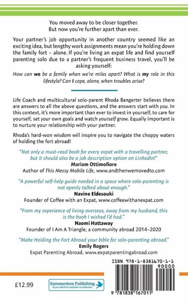 You moved away to be closer together. But now you're further apart than ever. Your partner's job opportunity in another country seemed like an exciting idea, but lengthy work assignments mean you're holding down the family fort - alone. If you're living an expat life and find yourself parenting solo due to a partner's frequent business travel, you'll be asking yourself: How can we be a family when we're miles apart? What is my role in this lifestyle? Can I cope, alone, when troubles arise? Life Coach and multicultural solo-parent Rhoda Bangerter believes there are answers to all these questions, and the answers start with you. In this context, it's more important than ever to invest in yourself, to care for yourself, set your own goals and watch yourself grow. Equally important is to nurture your relationship with your partner. Rhoda's hard-won wisdom will inspire you to navigate the choppy waters of holding the fort abroad!