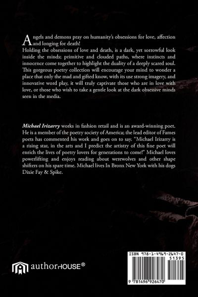 Angels and demons pray on humanity's obsessions for love, affection and longing for death! Holding the obsessions of love and death, is a dark, yet sorrowful look inside the minds; primitive and clouded paths, where instincts and innocence come together to highlight the duality of a deeply scared soul. This gorgeous poetry collection will encourage your mind to wonder a place that only the mad and gifted know, with its use strong imagery, and innovative word play, it will truly captivate those who are in love with love, or those who wish to take a gentle look at the dark obsessive minds seen in the media.