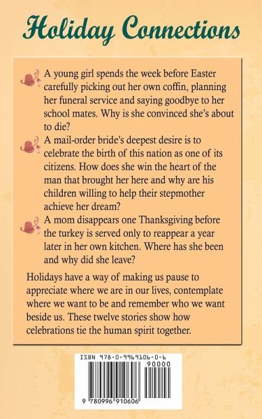 Holiday Connections is a series of stories that explore how the days of the year we set aside for celebrations can tie together family, friends and often strangers. From the child who involves her neighbors in planning her own funeral for Easter to the woman whose bump in the night on Halloween turns out to be a family in need, these stories explore human connections using twelve U.S. holidays as themes. The stories range from the mystery of a murder at the prestigious President's Club to the gentle romance that develops when a mail order bride falls in love with the man she's wed to a moving tale of a minister drawn to help his own community during the Christmas season. Holiday Connections is a book that deserves an accessible place on the bookshelf: one that people can reach for when they want to feel inspired by a holiday.