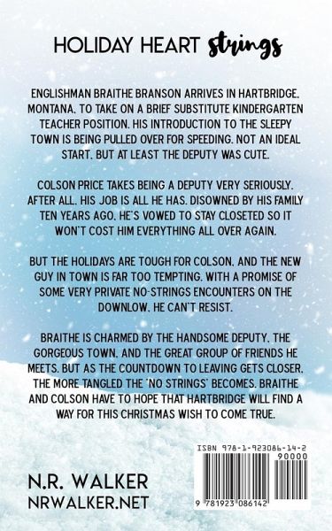Hartbridge Christmas Series - Book Four Englishman Braithe Branson arrives in Hartbridge, Montana, to take on a brief substitute kindergarten teacher position. His introduction to the sleepy town is being pulled over for speeding. Not an ideal start, but at least the deputy was cute. Colson Price takes being a deputy very seriously. After all, his job is all he has. Disowned by his family ten years ago, he's vowed to stay closeted so it won't cost him everything all over again. But the holidays are tough for Colson, and the new guy in town is far too tempting. With a promise of some very private no-strings encounters on the downlow, he can't resist. Braithe is charmed by the handsome deputy, the gorgeous town, and the great group of friends he meets. But as the countdown to leaving gets closer, the more tangled the 'no strings' becomes. Braithe and Colson have to hope that Hartbridge will find a way for this Christmas wish to come true.