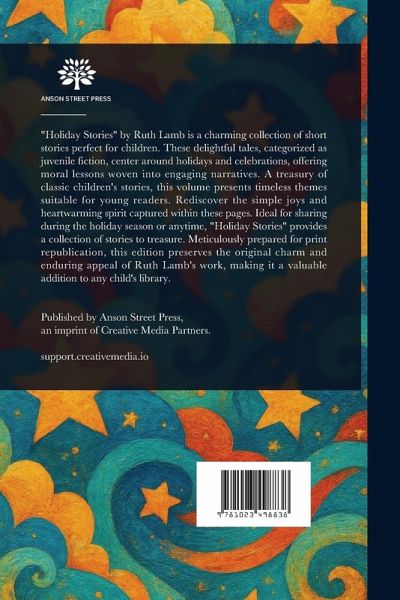 "Holiday Stories" by Ruth Lamb is a charming collection of short stories perfect for children. These delightful tales, categorized as juvenile fiction, center around holidays and celebrations, offering moral lessons woven into engaging narratives. A treasury of classic children's stories, this volume presents timeless themes suitable for young readers. Rediscover the simple joys and heartwarming spirit captured within these pages. Ideal for sharing during the holiday season or anytime, "Holiday Stories" provides a collection of stories to treasure. Meticulously prepared for print republication, this edition preserves the original charm and enduring appeal of Ruth Lamb's work, making it a valuable addition to any child's library. This work has been selected by scholars as being culturally important, and is part of the knowledge base of civilization as we know it. This work is in the public domain in the United States of America, and possibly other nations. Within the United States, you may freely copy and distribute this work, as no entity (individual or corporate) has a copyright on the body of the work. Scholars believe, and we concur, that this work is important enough to be preserved, reproduced, and made generally available to the public. We appreciate your support of the preservation process, and thank you for being an important part of keeping this knowledge alive and relevant.